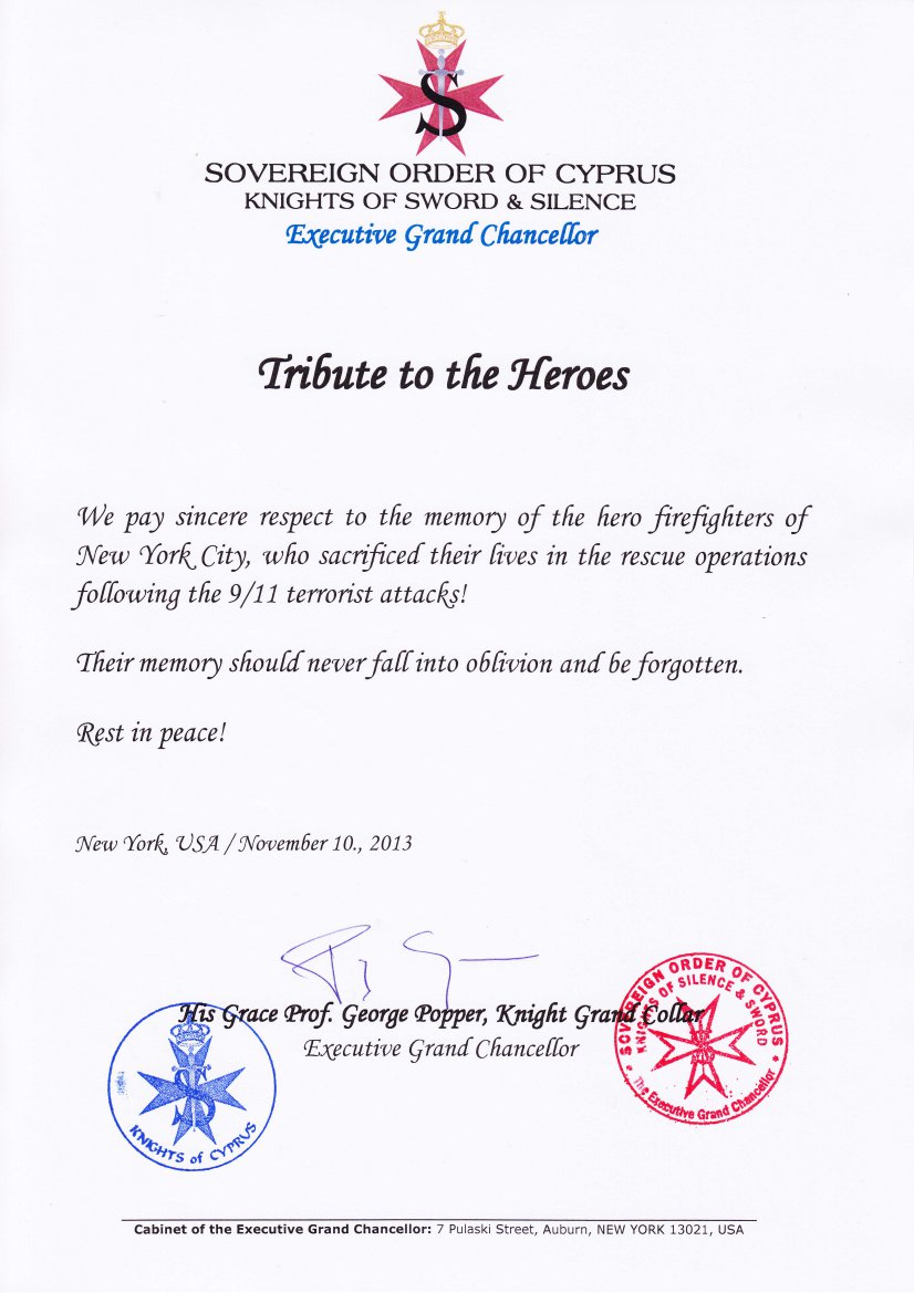 "A Ground Zero mai üzenete, hogy a nemzetközi terrorizmus elleni fellépés közös felelősségünk" – jelentette ki Sir Schmuck Andor, a Jeruzsálemi Szent János Szuverén Máltai Lovagrend Autonóm Perjelségek Szövetsége (KMFAP) lovagja - aki látogatást tett a new yorki Ground Zero 9/11 emlékhelyen.
