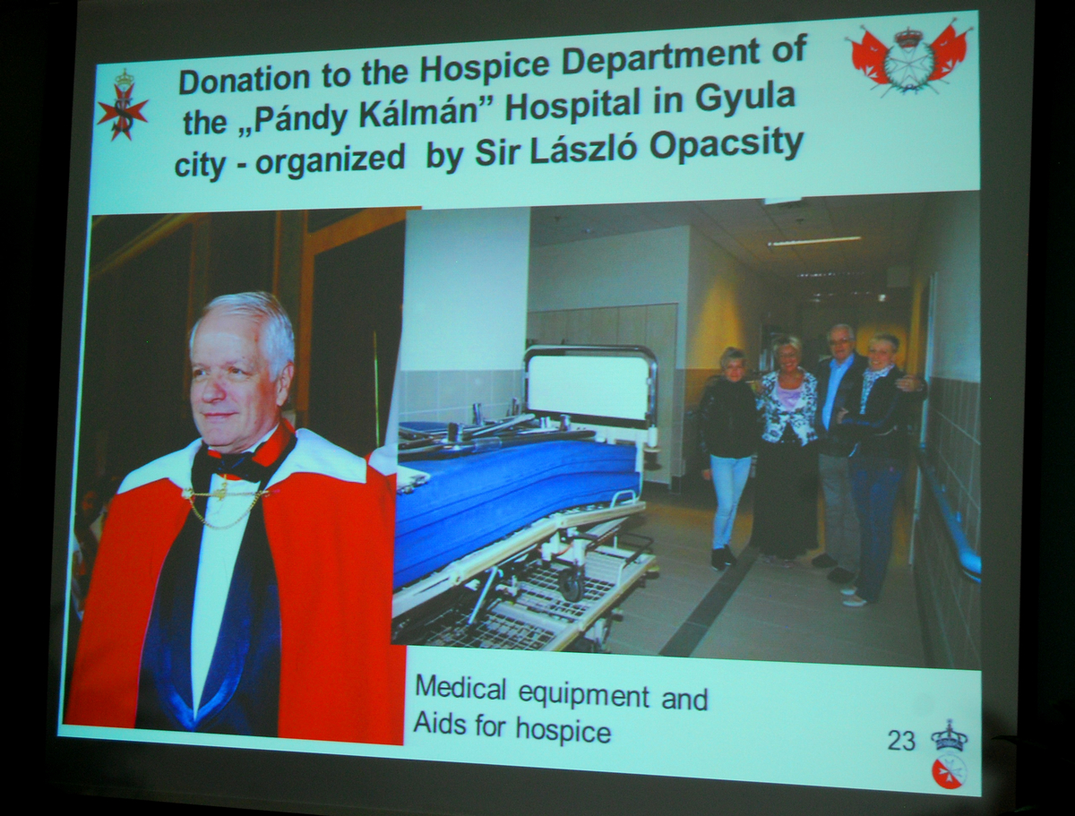 A köszöntők után a résztvevők prezentációt láthattak a Lovagrend tevékenységéről, amelyben kiemelt helyet foglal el a nemzetközi szintű humanitárius munka. Meghallgatták a FEMERAID International Budapest vezetőjének beszámolóját a humanitárius és katasztrófaelhárító tevékenységről.