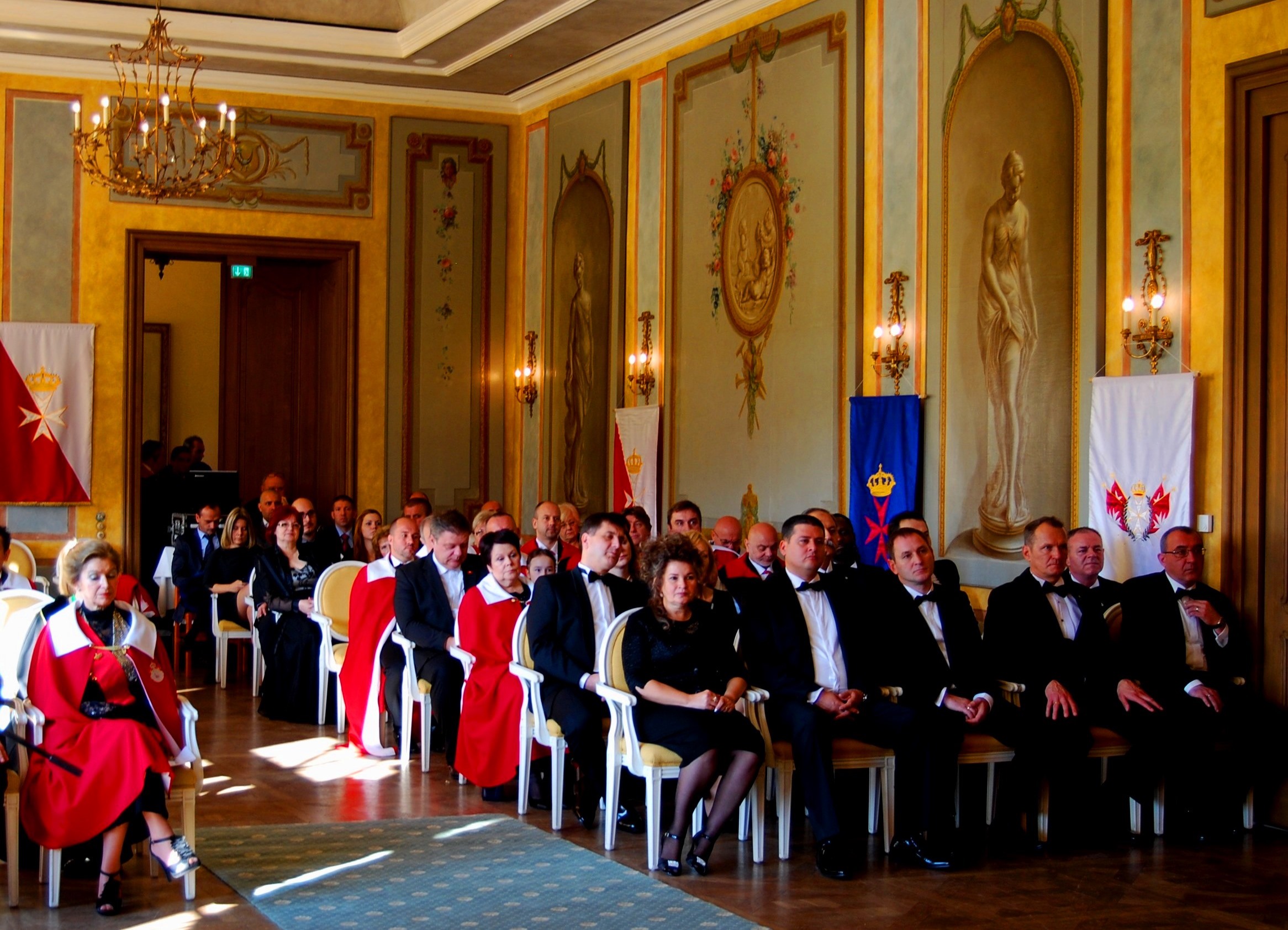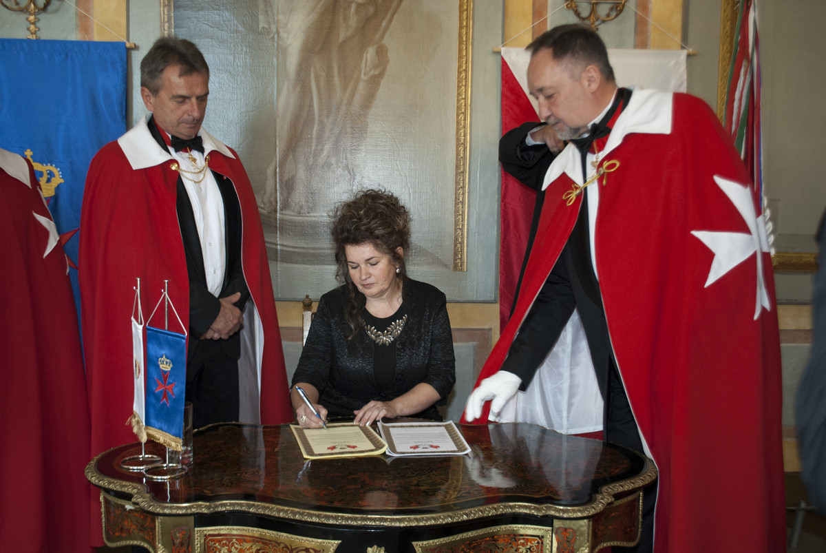 9 Máltai lovagjelöltet és 2 dámajelöltet avatott fel a Nagymester a lovagok és dámák asszisztenciájával: a lovagi eskü aláírása utáni három kardérintést követte a nyakkereszt (hölgyeknek masnis kereszt) - mint a védelmet nyújtó pajzs jele – felkötése, a lovagi palást vállra terítése - mint a testvériség jelképe - a térdelő személy sarkának sarkantyúval érintése. Ez a szimbolikus gesztus utal a lovagok lovas múltjára.