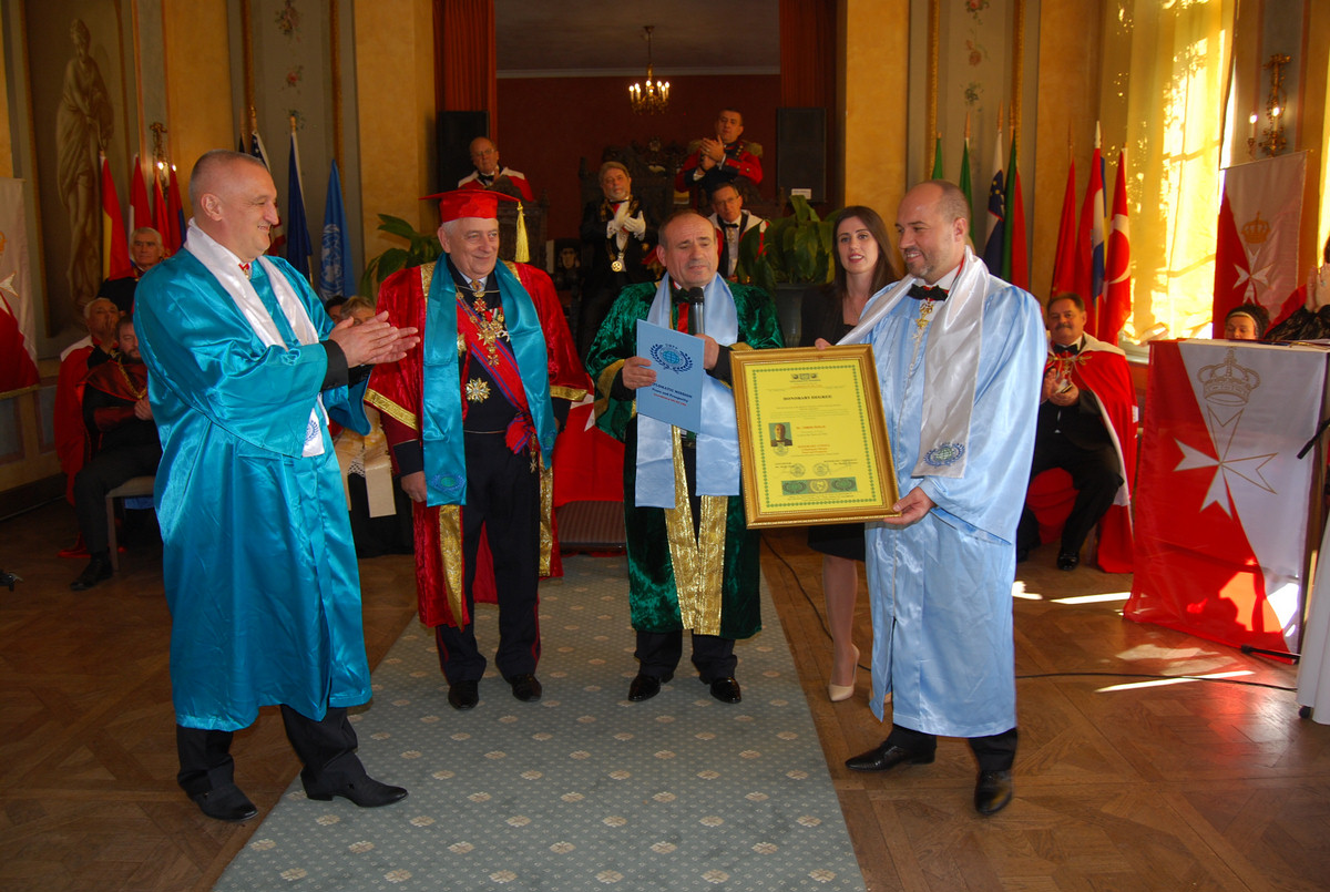 Kitüntetés átadásával folytatódott az esemény: a Nagymester Őexc. Shefki Hysa úrnak, a DMPP kormányzójának átadta a Máltai Lovagrend nagykeresztje kitüntetést. Az iraki Bashra város alpolgármestere, Welid Hemid Ghiten Alkalfewi úr a Pro Deo State University díszdoktori diplomáját vette át.